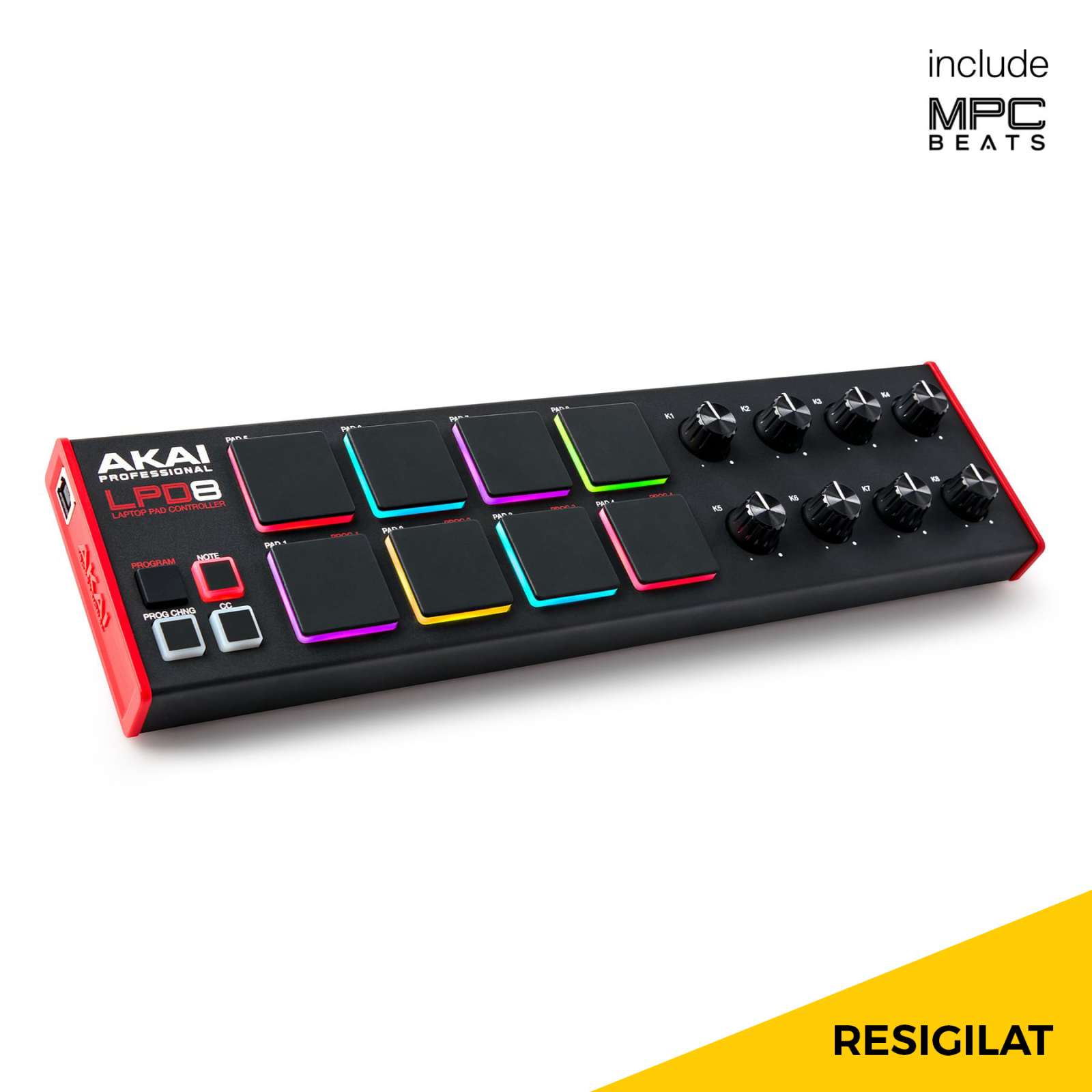 Akai LPD 8 MK2 este un controller USB-MIDI cu 8 pad-uri sensibile la velocitate, 4 memory bank-uri programabile, 8 knob-uri Q-Link, conexiune si alimentare USB. Vine insotit de softwareul pentru productie muzicala MPC Beats.