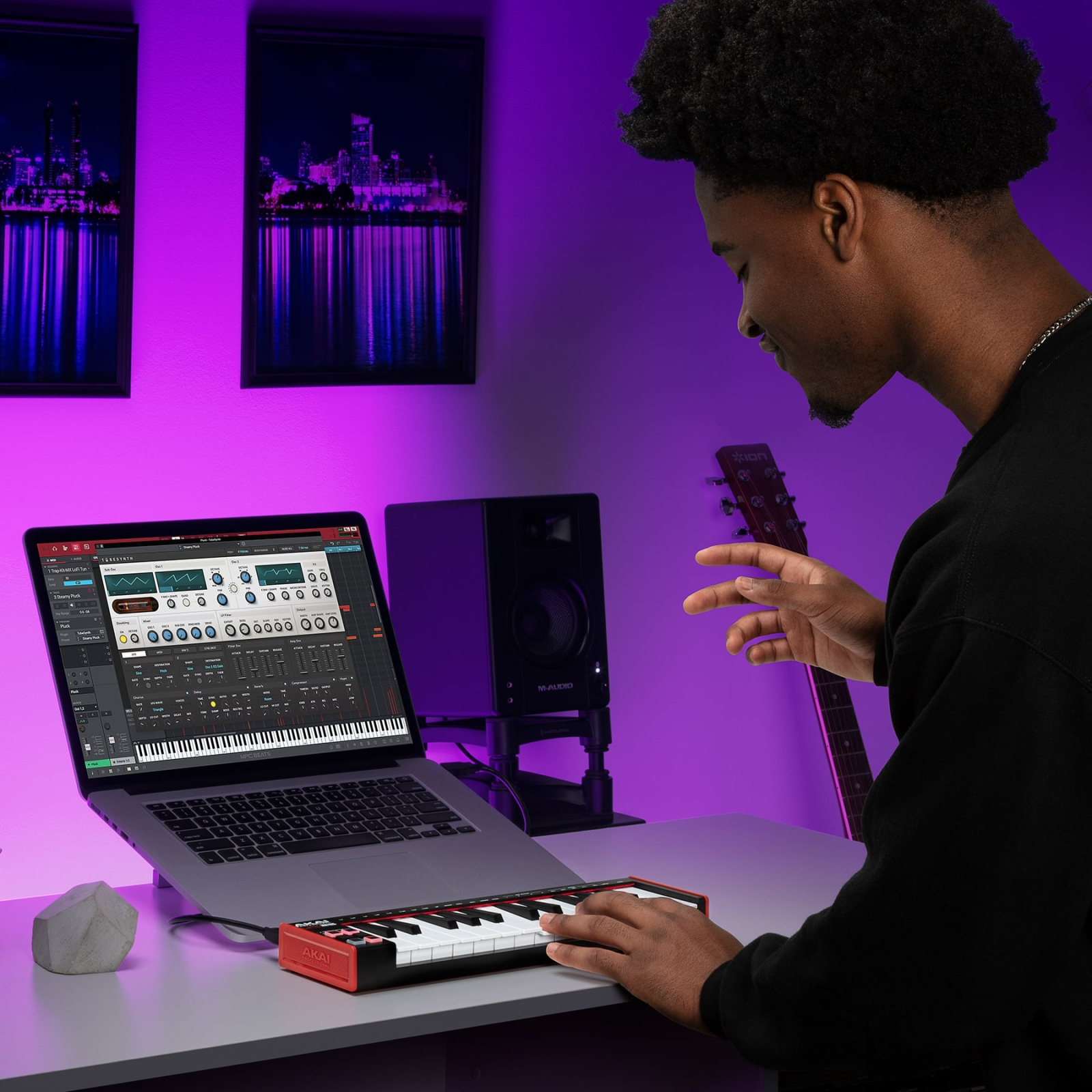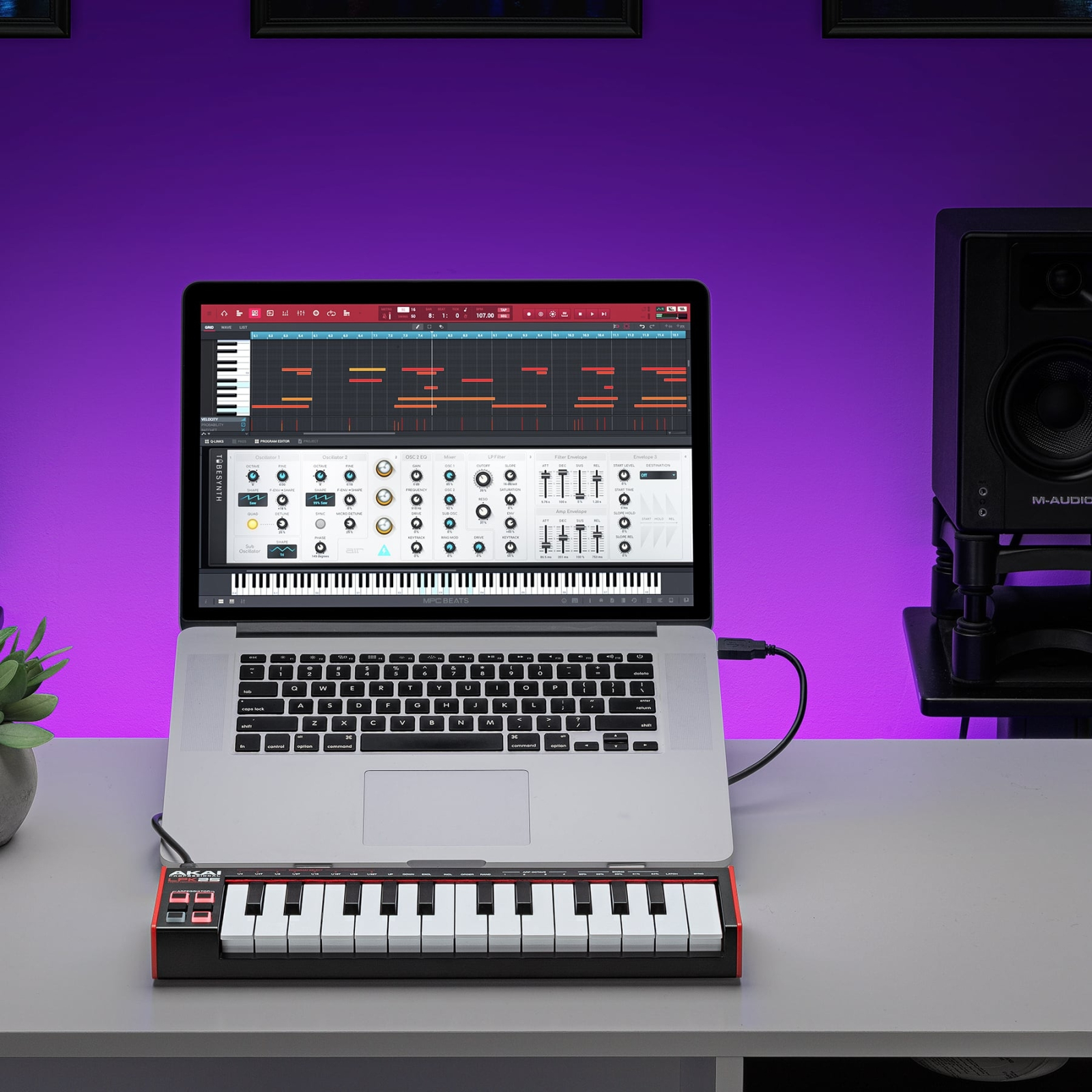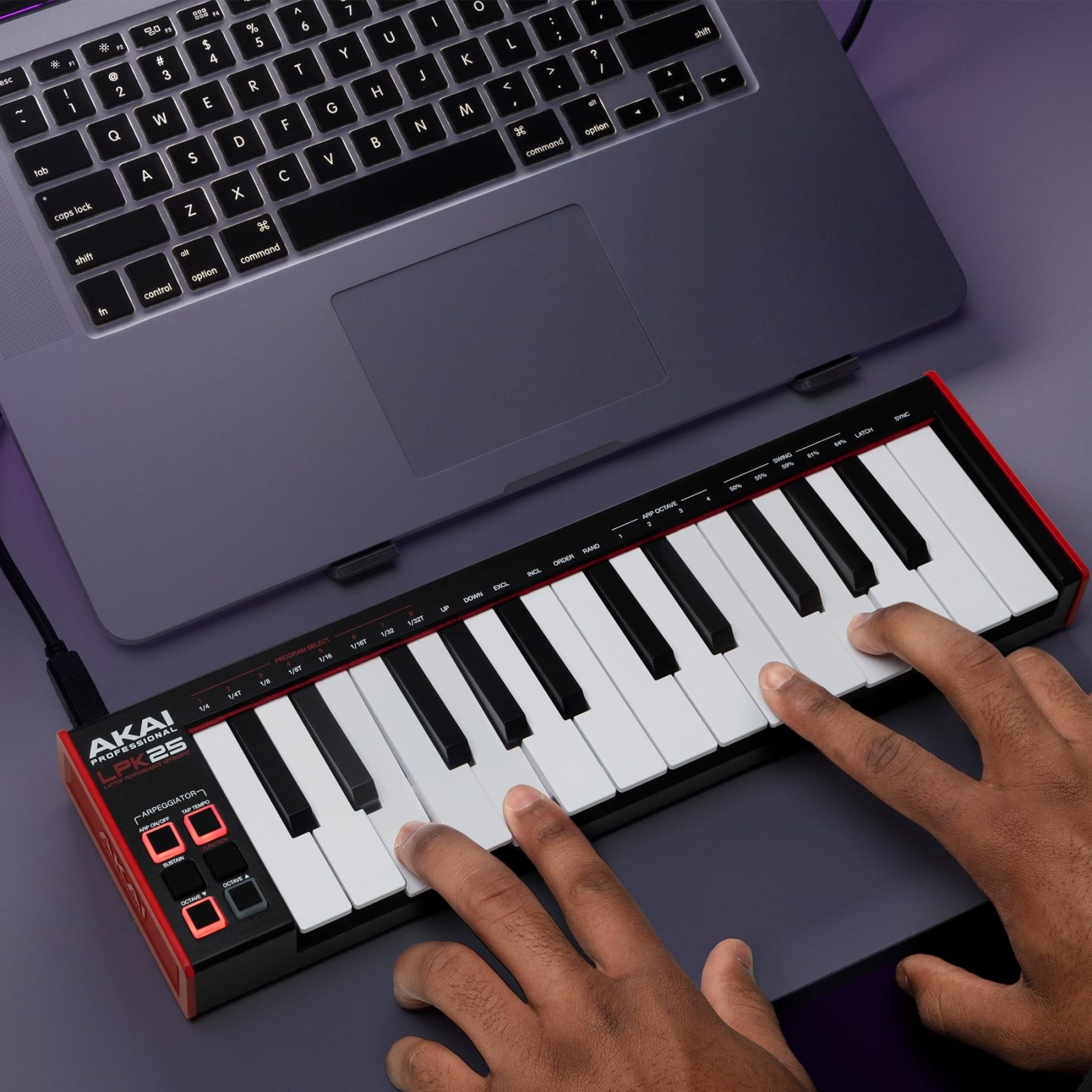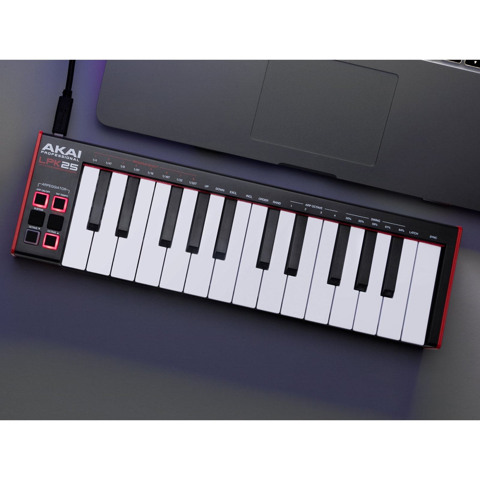 Akai LPK 25 MK2 este o clapa MIDI cu 25 de mini-clape sensibile la velocitate, arpegiator, sustain si butoane de control pentru tempo. Integreaza conexiune USB plug-n-play si vine in pachet cu softwareul de productie muzicala MPC Beats.
