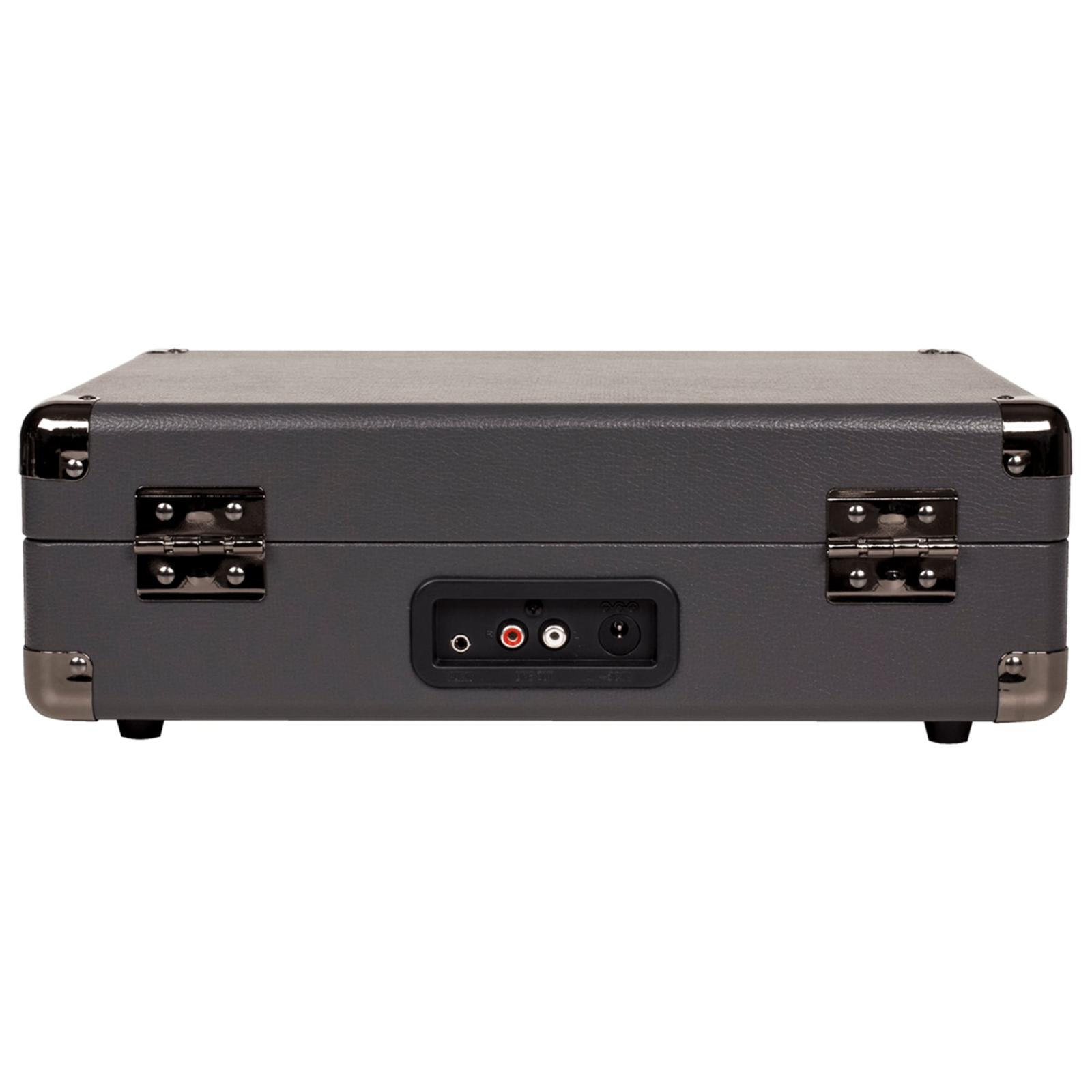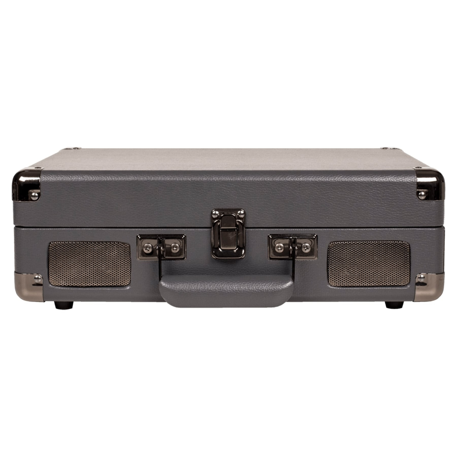 Crosley Cruiser Deluxe - Slate este un pick-up portabil belt drive cu 3 viteze (33 1/3, 45 & 78 RPM), tehnologie Bluetooth, difuzoare stereo integrate, Pitch Control ajustabil, Cueing Lever, auto-stop, intrare aux, iesire RCA, iesire jack de casti si doza cu ac premontata.