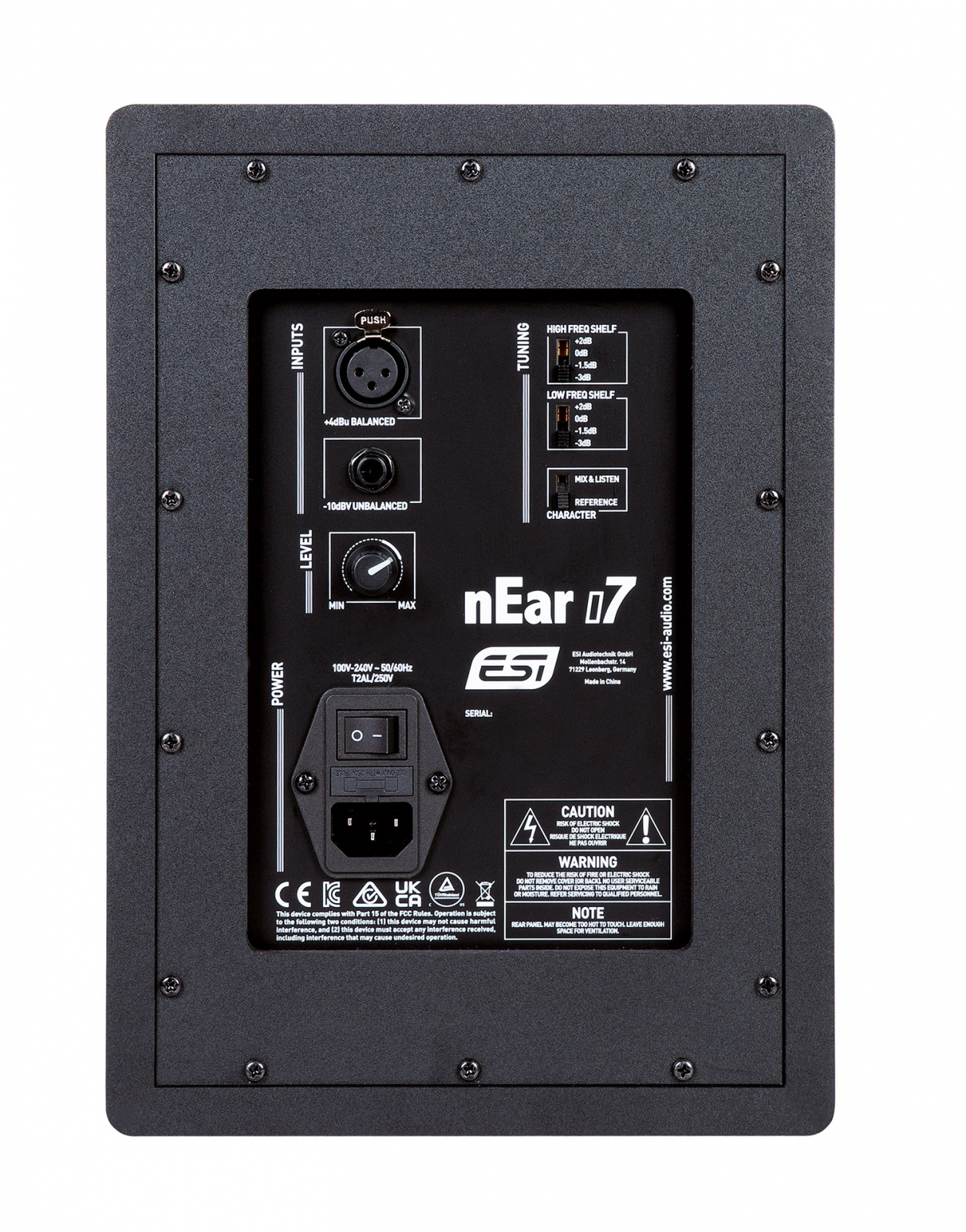ESI nEar i7 este un monitor audio de referință cu woofer de 6.5" pentru utilizatorii entry-level care caută calitate profesională. nEar i7 este echipat cu DSP, amplificare de clasă D și oferă un răspuns ultra-plat oe frecvențe joase. Noul tweeter-ul cu con de mătase și woofer-ul special de 6.5" din fibre de hârtie durabile oferă o putere de neegalat pe intervalul de frecvențe joase-medii, oferind un răspuns nemaivăzut pentru această clasă. Comutatorul de selecție a caracterului oferă setări Mix & Listen sau sunet de referință precis.