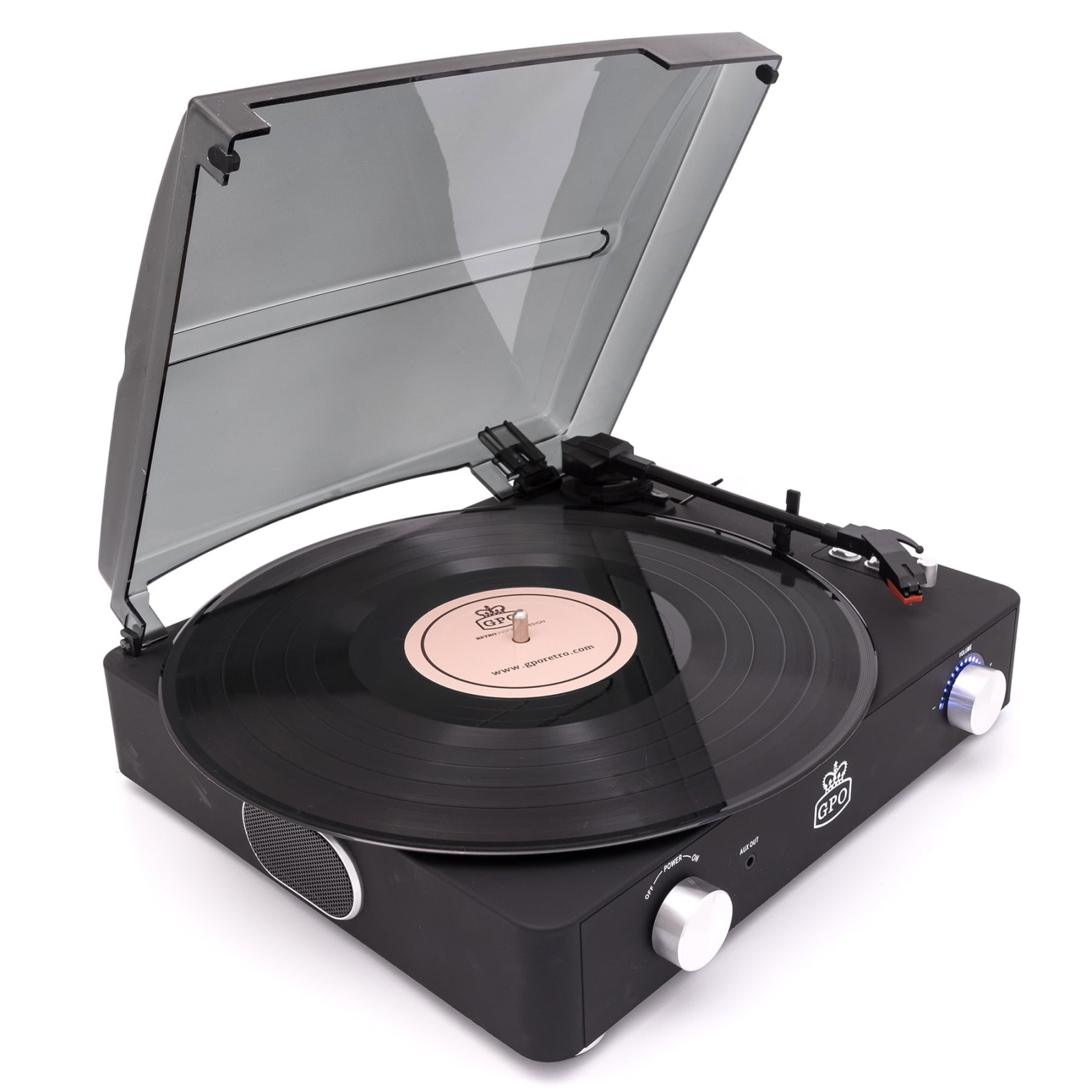 GPO Stylo II Black - este un pick-up cu 3 viteze (33, 45 & 78RPM), difuzoare incorporate (2x 2W), capac de protectie, Pitch Control, functie Auto Stop, jack pentru Casti si intrare aux de 3.5mm. Este de asemenea compatibil cu orice difuzoare externe.