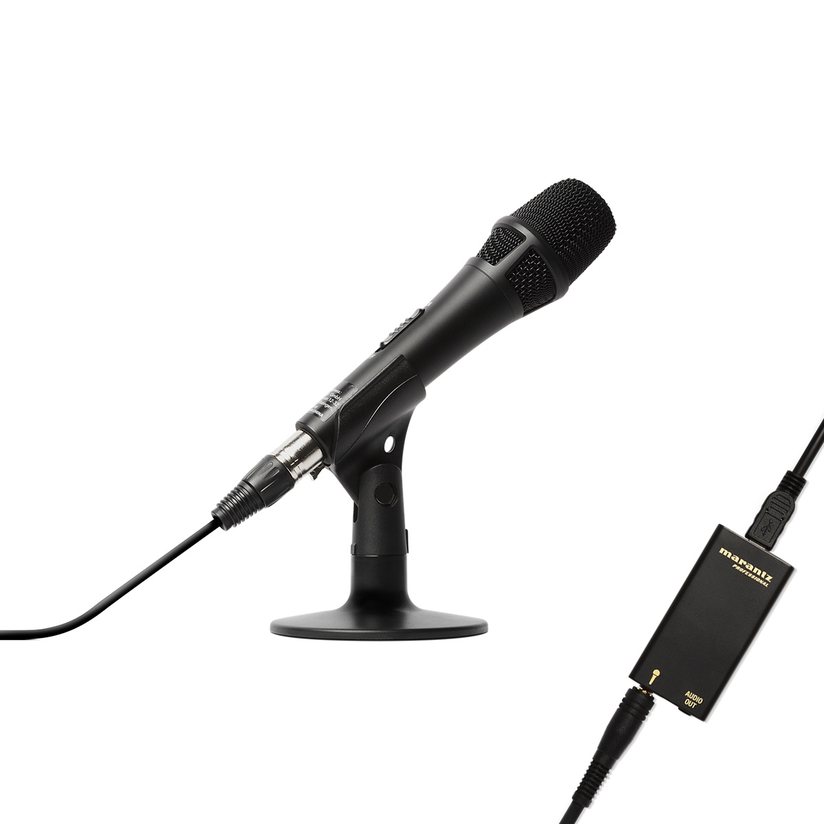 In pachet: 1 x 1 x Marantz Professional M4U, stativ de masa, cablu XLR-Jack, adaptor USB A/D, cablu USB, instructiuni de instructiuni