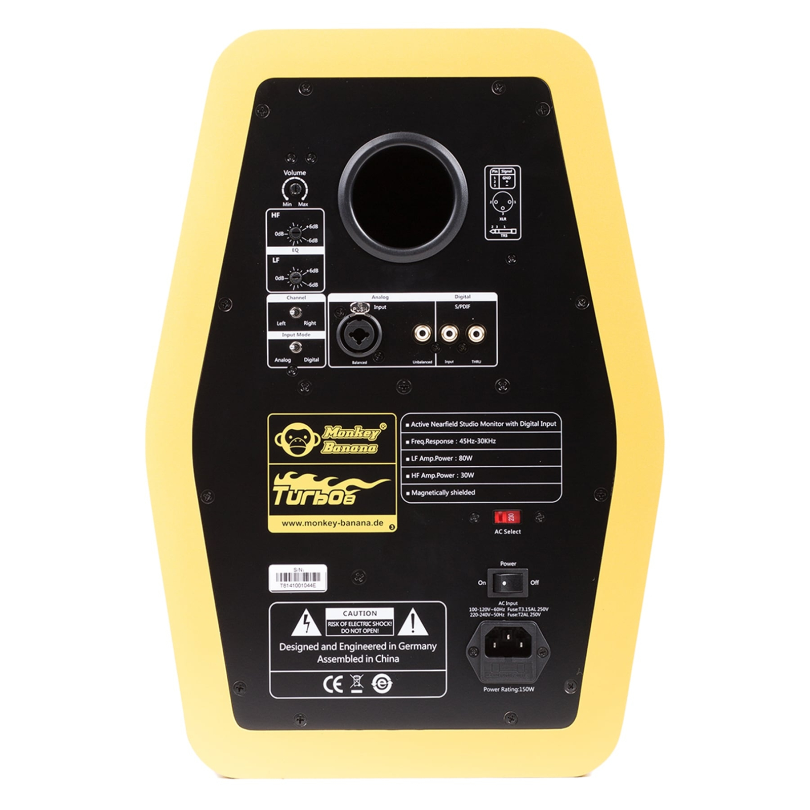 Monkey Banana Turbo 8 Banana este un monitor de studio nearfield, ideal ca solutie de monitorizare in studiourile profesionale medii sau mari. Vine cu bi-amplificator cu o putere totala de 110W pe o plaja de frecvente 45Hz - 30kHz ce ajuta la obtinerea mixurilor perfecte in medii nearfield.