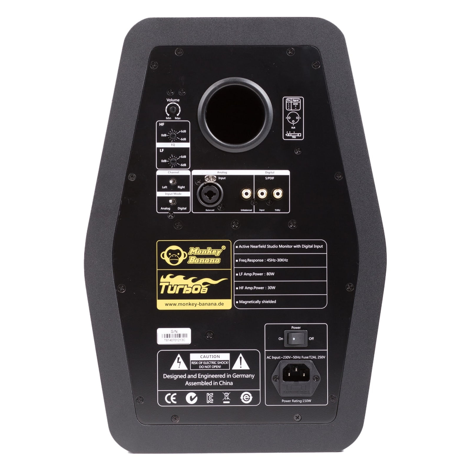 Monkey Banana Turbo 8 Black este un monitor de studio nearfield, ideal ca solutie de monitorizare in studiourile profesionale medii sau mari. Vine cu bi-amplificator cu o putere totala de 110W pe o plaja de frecvente 45Hz - 30kHz ce ajuta la obtinerea mixurilor perfecte in medii nearfield.
