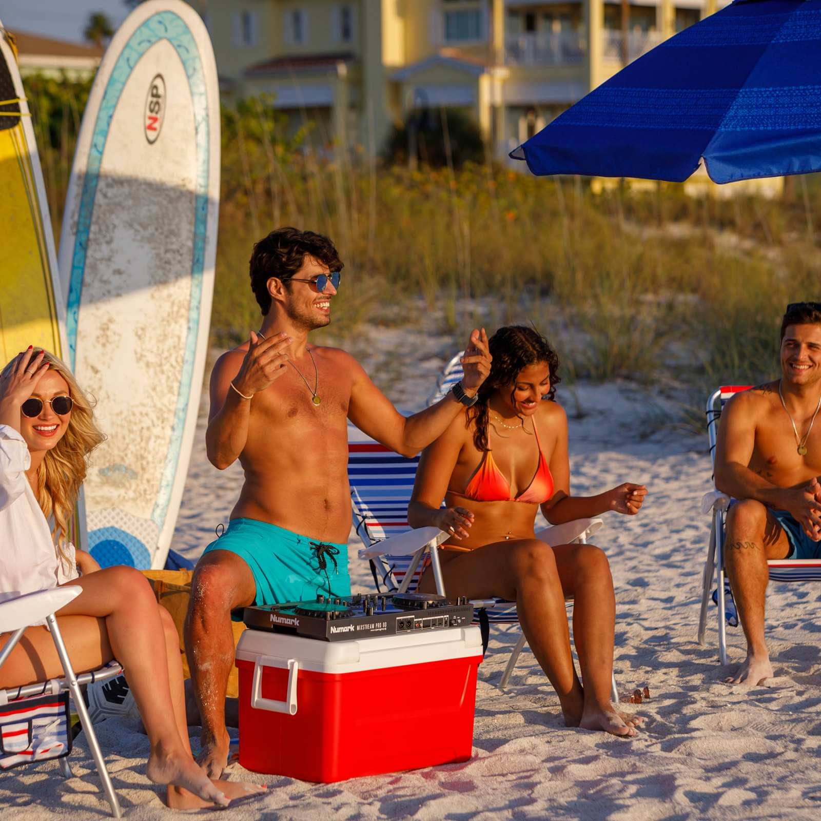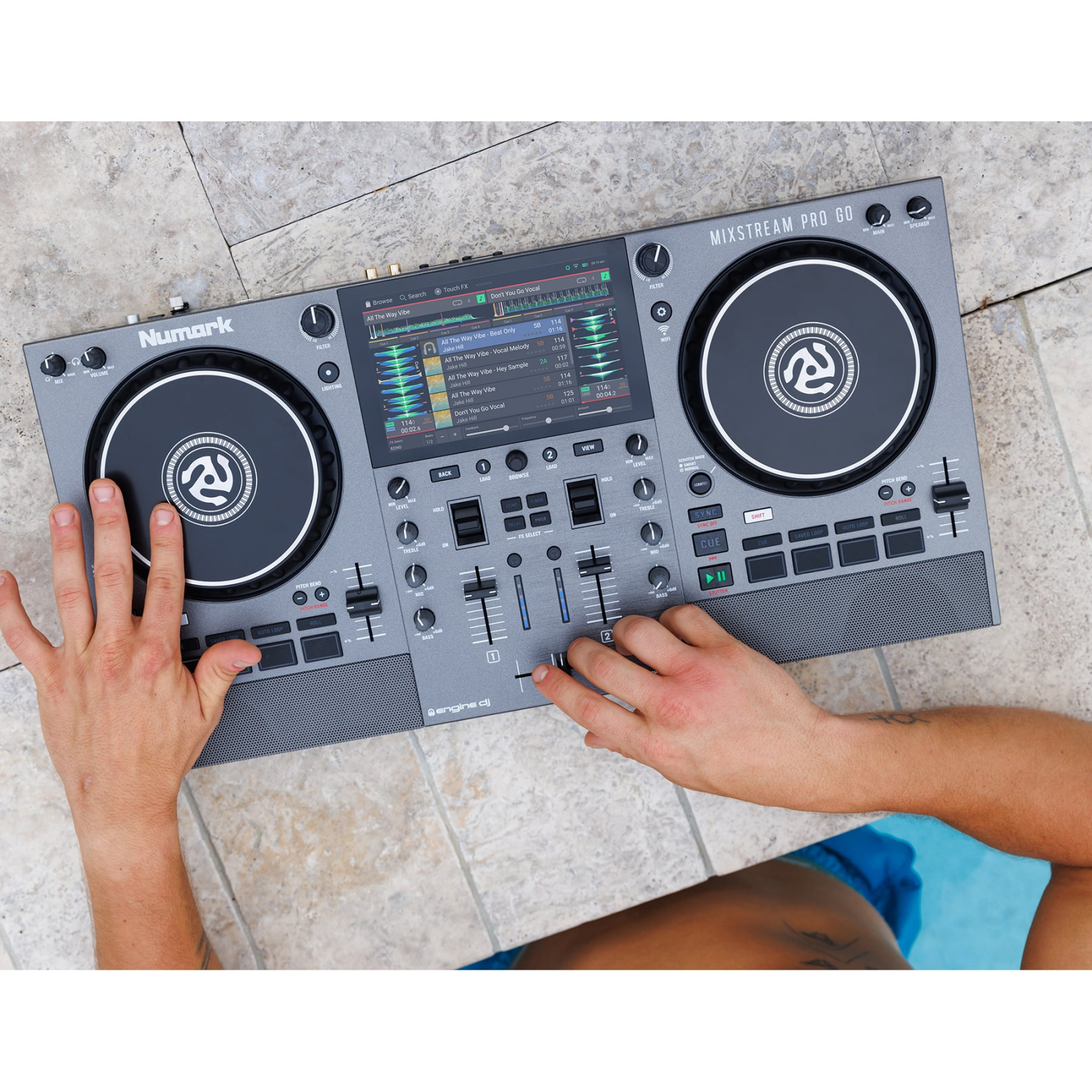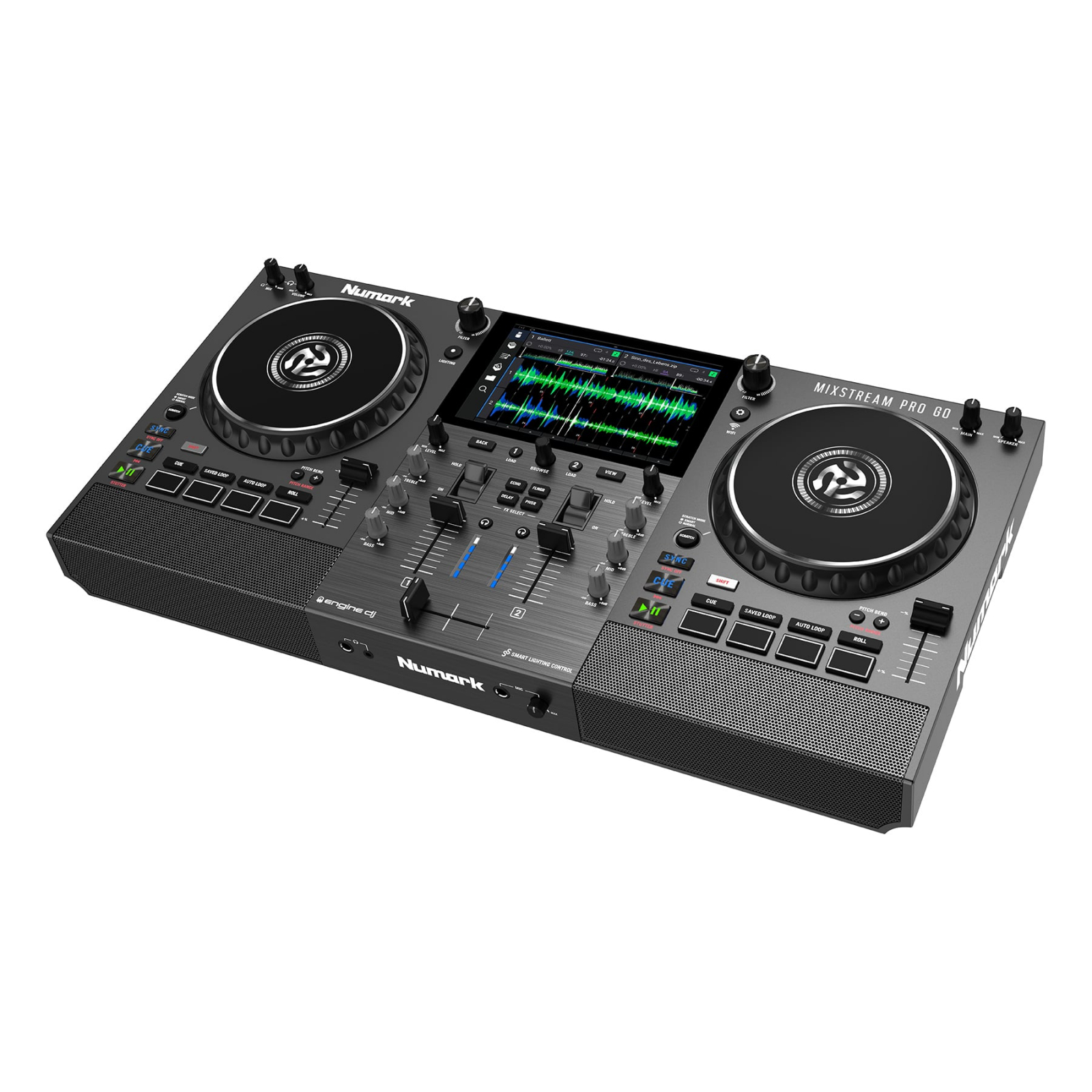 Numark Mixstream Pro GO este o consola standalone cu baterie incorporata, display LED tactil de 7”, Engine OS (elimina nevoia unui computer), difuzoare integrate, 4 pad-uri pe fiecare deck, jog-uri de 6” cu functie Smart Scratch, stream WiFi, sectiune FX si EQ pe 3 benzi. Integreaza iesiri XLR, conexiune USB, slot media SD si intrare de microfon. De asemenea este compatibila si cu servicii online de streaming ca: Amazon Music Unlimited, Tidal, Beatport Link, Beatsource Link, Soundcloud ori Dropbox. Atunci cand este legata la un computer poate controla Serato DJ sau Virtual DJ (se achizitioneaza separat).