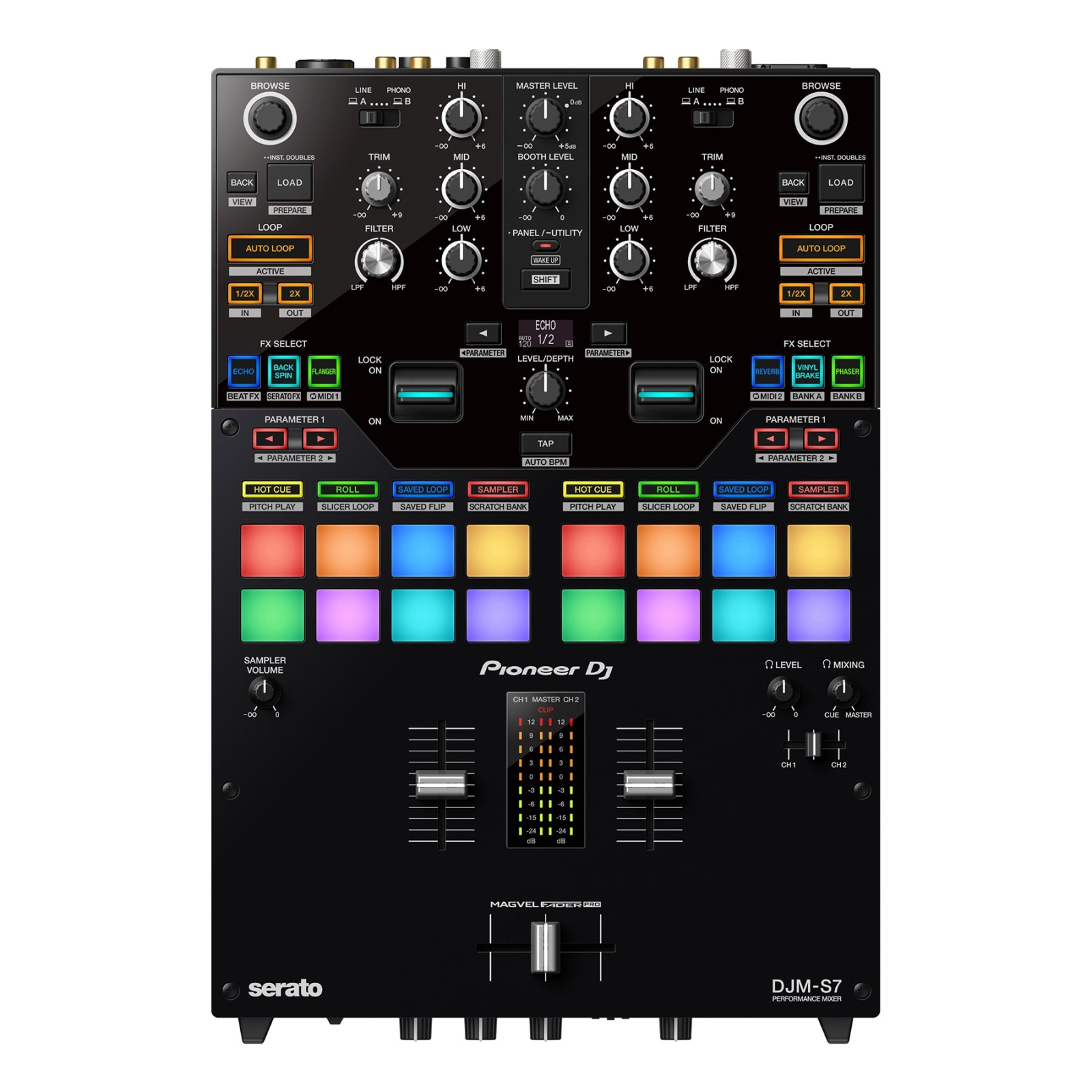 Pioneer DJ DJM S7 este un battle mixer pe 2 canale, cu interfata audio USB integrata, crossfader Magvel Pro, 16 pad-uri si 5x Sound Color FX + 22x Beat FX. Vine cu Serato DJ Pro, Rekordbox DJ, Serato P’nT DJ, Serato DVS si Rekordbox DVS incluse in pachet.