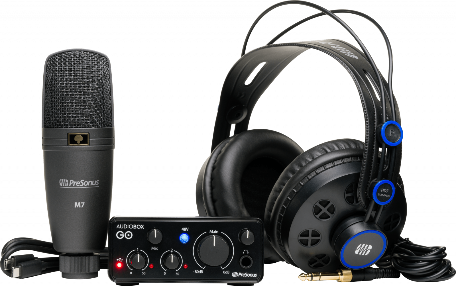 Interfață audio USB-C PreSonus AudioBox GO 2x2, 24 biți / 96 kHzCăști de înaltă fidelitate PreSonus HD7