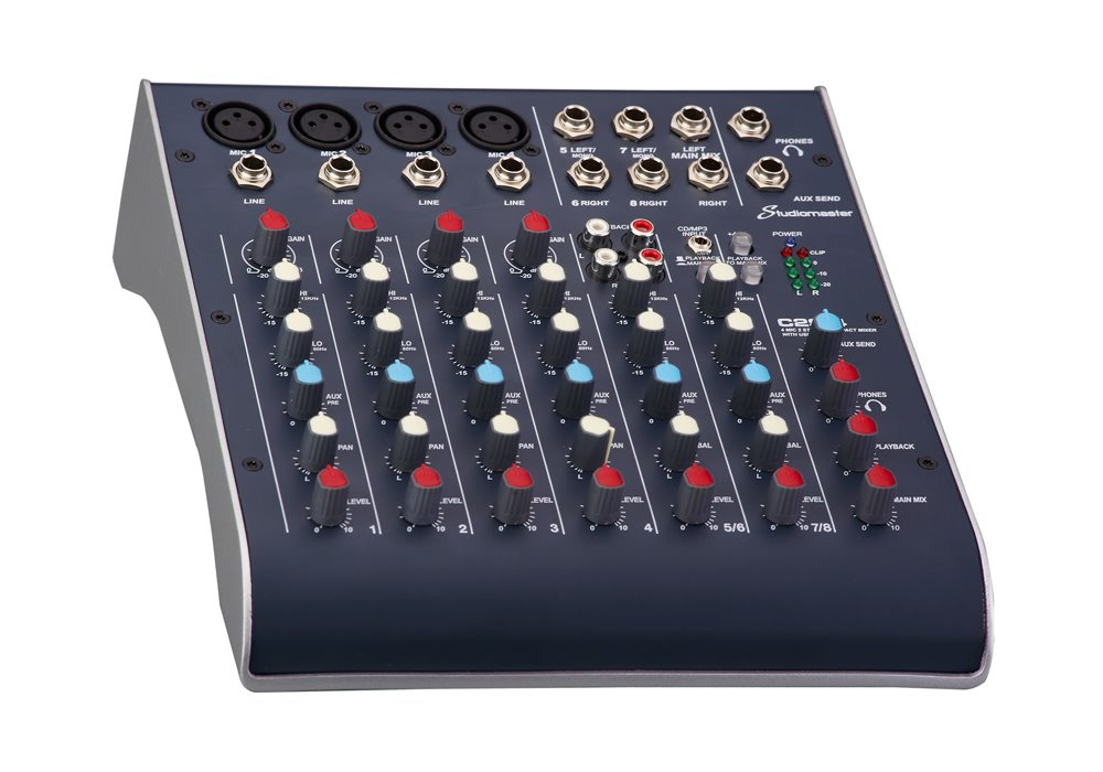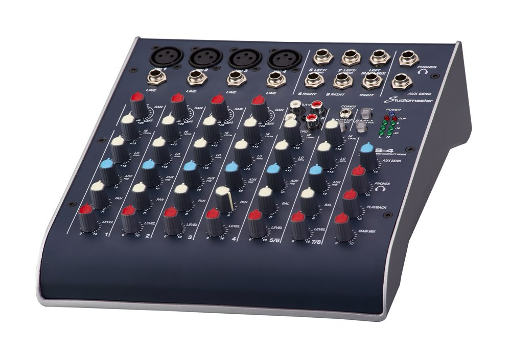StudioMaster C2S-4 USB - Mixer analogic cu 8 intrări, 4 canale de microfon, 2 canale stereo, EQ pe 2 benzi și înregistrare / redare USB.