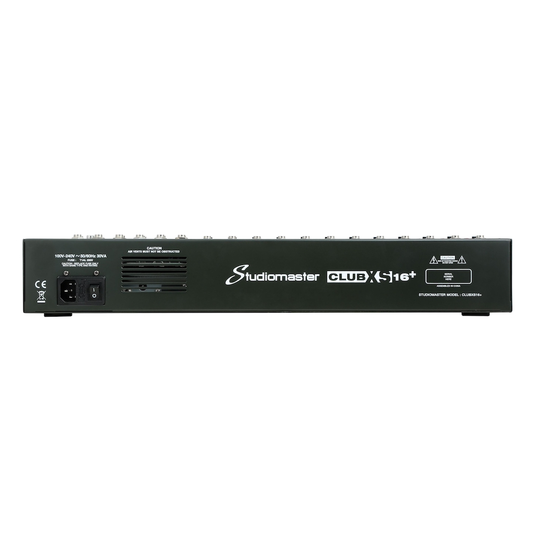 Studiomaster CLUB XS16+ - Mixer analog cu design compact, carcasă rezistentă, efecte DSP și tehnologie Bluetooth, ideal pentru concerte live și evenimente de dimensiuni medii.