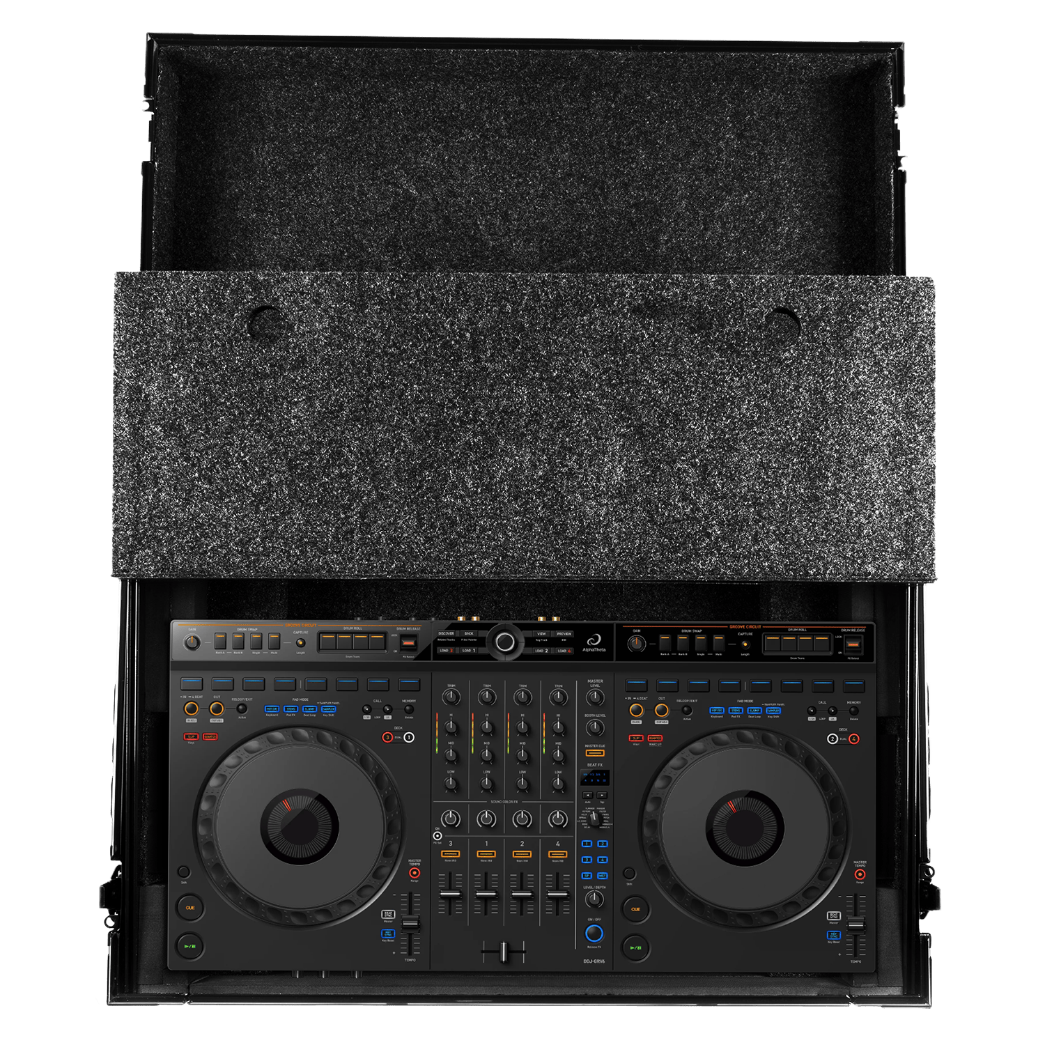 Model: Ultimate Flight Case AlphaTheta DDJ-GRV6 Black Plus (Laptop Shelf)